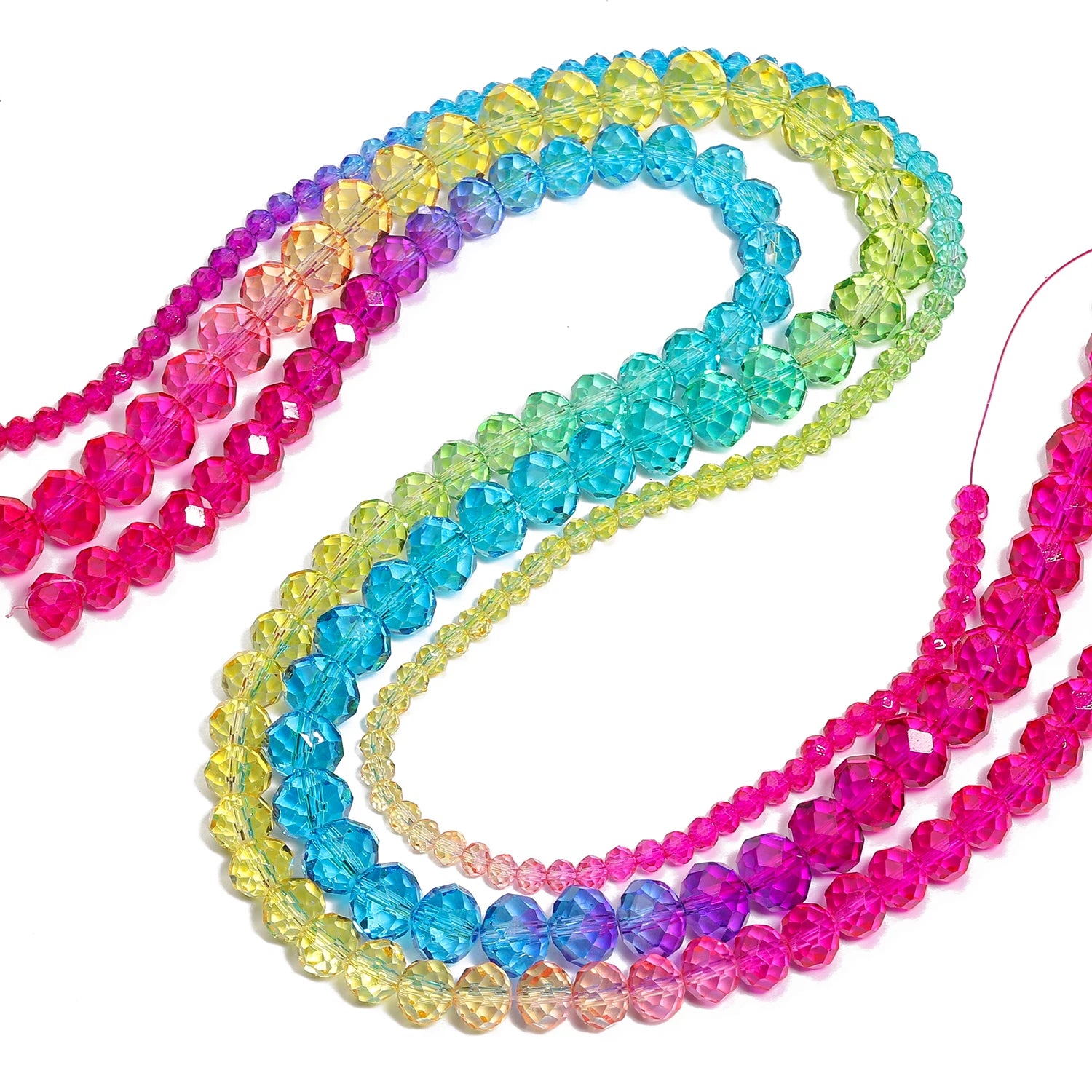Faceted Rainbow Gradient Glass Crystal Rondelle Beads